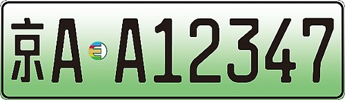 號牌號碼由一個(gè)代表一級行政區的簡(jiǎn)體漢字配以一個(gè)拉丁字母和一組6位數字或拉丁字母組成,比普通汽車(chē)號牌增加一位數。其中,字母“D”代表純電動(dòng)汽車(chē),字母“F”代表非純電動(dòng)汽車(chē)(包括插電式混合動(dòng)力和燃料電池汽車(chē)等)。小型汽車(chē)號牌中“D”或“F”位于號牌序號的第一位,大型汽車(chē)號牌中“D”或“F”位于號牌序號的最后一位。