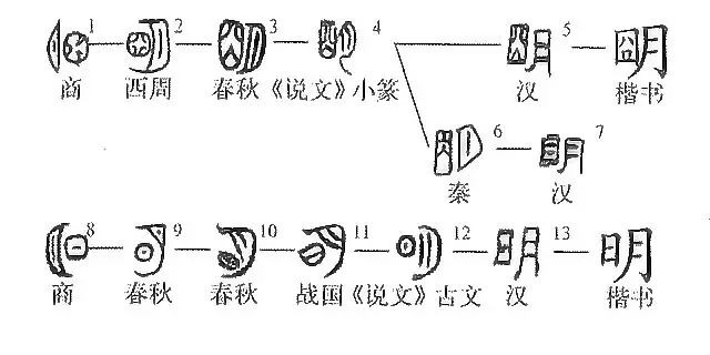 《茍子·天論》說(shuō)得對:“在天者莫明于日月。”也就是說(shuō),在天上沒(méi)有再比太陽(yáng)和月亮更明亮的了。我們的祖先也正是這樣想的,所以甲骨文①是左“月”右“日”組成“明”字,可見(jiàn)這是一個(gè)會(huì )意字??墒堑搅私鹞蘑趧t發(fā)生了偽變,把“日”字變成了“窗戶(hù)”形,月亮照在窗上即表示光明的意思,當然也是會(huì )意字。小篆③是由金文形體變來(lái)的,大致與金文同.其左也有窗戶(hù)形。到了楷書(shū)④又還原到甲骨文的會(huì )意方式,用“日”和“月”組成“明”,不過(guò)日、月的位置與甲骨文相反。