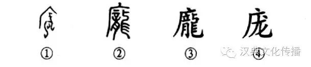 “龐然大物也,以為神?!边@個(gè)“龐”字本為會(huì )意字。甲骨文①是在屋子下面有一巨龍,意味著(zhù)這屋子實(shí)在高大。②是小篆的形體,其中的“龍”形變得不像了,筆畫(huà)極為復雜。③是楷書(shū)繁體字,與小篆極為相似。④是簡(jiǎn)化字。