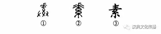 “丹心素節本無(wú)求?!边@個(gè)“素”字本為會(huì )意字。①是金文的形體,其中間為白繒(絲織品)之形,下部?jì)蓚葹殡p手,是表示雙手執白繒。②是小篆的形體,雙手被省掉了,其上部更像繒的下垂形,其下部的“絲”表示白繒是用絲織成的。③是楷書(shū)的寫(xiě)法。