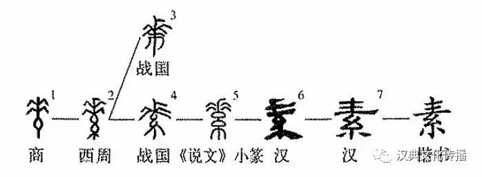 ,會(huì )意?!鄙吓e字形3下部所從之“巿',(古代一種服飾),與從“糸”義通。字之上部“垂”字經(jīng)過(guò)隸變,線(xiàn)條拉平直了,變成了三橫一豎,最后形成現在“素”字的寫(xiě)法。素、索本一字分化?!八鳌弊旨坠俏淖?img src="/d/file/p/2016/12-13/1481588321_333.jpg" />(《甲文編》104頁(yè)),金文作