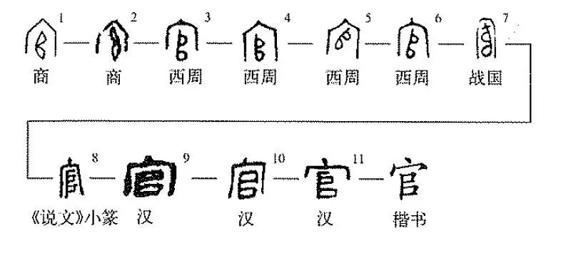 會(huì )意字。楊樹(shù)達《積微居小學(xué)金石論叢》:“《說(shuō)文十四篇下??部》云:‘官,吏事君也,從宀,從??,??猶眾也。此與師同意?!l先輩何子貞先生《東州草堂文鈔》卷八跋《漢潘乾校官碑》云:‘校官者,學(xué)舍也。官字從宀,凡從宀之字皆以屋室為義……’”姚孝遂《甲骨文字詁林》“官”字條后按語(yǔ):“《說(shuō)文》訓官為‘吏事君也’,乃后起之義。王筠《句讀》已疑之。俞樾《兒笘錄》云:‘宀者交覆深屋也,吏事君者何取而從宀?許君說(shuō)此字殆未得其本義矣。今按官者館之古文也。從宀覆??,正合館舍之義。食部:館,舍也,從食官聲。此乃后出字,古字止作官?!抖Y記·曲禮篇》:在官言官,注曰:官謂版圖文書(shū)之處也?!队裨迤罚涸诠俨毁箤?,注曰:官謂朝廷治事處也。官皆即館字?!兑住るS》:初九有渝,《釋文》曰:‘官,蜀才本作館。蓋官古字,館今字也?!瓌t‘帝官’、‘帝不官’,官亦當讀作‘館’。待賓客之舍曰館,賓客止于舍亦謂之館?!对?shī)·公劉》‘于豳斯館’,《左傳·僖十五年》:‘改館晉侯,饋七牢焉?!^均用為動(dòng)詞。”總之,官本義為館舍之義。(周寶宏)