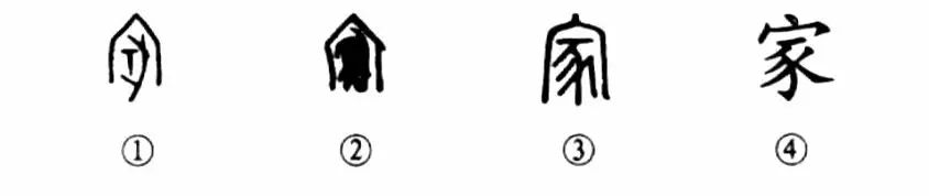賀知章的名詩(shī)《回鄉偶書(shū)》“少小離家老大回”,這個(gè)“離家”當然是指“人”離家了??墒羌坠俏蘑賲s以“屋內有豕(豬)”為“家”。從這個(gè)字可以看出,在上古人們的牧業(yè)是從養豬開(kāi)始的,可見(jiàn)豬對人之重要?!凹摇弊质莻€(gè)會(huì )意字,你看金文②那就更形象了,外面是屋,屋內有一只頭朝下的豬。小篆③是屋內有“豕”(豬)。④是楷書(shū)的寫(xiě)法,與小篆大體相同。