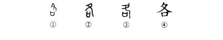這個(gè)“各”字是個(gè)會(huì )意字。甲骨文①的上部是一只腳趾朝下的腳,其下部的“口”字是個(gè)門(mén)口,表示人從外面走進(jìn)來(lái)的意思。②是金文的形體。③是小篆的形體,都與甲骨文相似。④是楷書(shū)的寫(xiě)法。