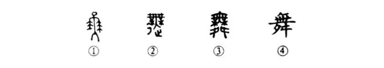 李白《高句驪》詩(shī):“翩翩舞廣袖”這個(gè)“舞”字就是個(gè)象形字。我們看甲骨文①的中間是正面立著(zhù)的一個(gè)人,左右兩手執牛尾而舞,正如后世頭插雉翎翩翩起舞的意思。金文②發(fā)生了較大的變化,除了基本上保留甲骨文的形象之外,又在其左下加上了“彳”,在其右下加上了“止”,合起來(lái)是“辵”,表示動(dòng)的意思一一“起舞”當然要動(dòng)的。小篆③則又比金文簡(jiǎn)化了一些,在“舞人”之下,加上了左右的兩只腳,這也正表明舞蹈必須用腳。④是楷書(shū)寫(xiě)法,是直接由小篆楷化而來(lái),筆畫(huà)極為繁雜,但至今仍未簡(jiǎn)化