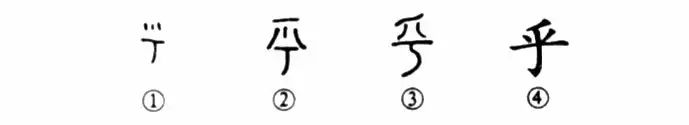 “有朋自遠方來(lái),不亦說(shuō)(悅)乎?”這個(gè)“乎”字與“兮”字相類(lèi)似,也是個(gè)指事字。甲骨文①橫線(xiàn)之上的三點(diǎn)是指事符號,表示說(shuō)話(huà)時(shí)氣息或聲音自口中發(fā)出。②是金文的形體,與甲骨文基本相似。只是上部多了一橫。③是小篆的形體。④為楷書(shū)的寫(xiě)法。自古至今一脈相承。