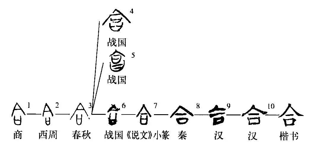 象形字。像蓋兒與器上下相合之形?!昂稀弊謴纳檀连F代,基本形式古今一貫,只有筆勢方面的微小變化。但在戰國期間,主要在楚系文字中有增從“甘”或“口”的寫(xiě)法,這種形式也見(jiàn)于以“合”為構件的合體字。本義是蓋合,引申為閉合、聚合、結合、符合等義。《小屯南地甲骨》2350:“王其以眾合又(右)旅。”此用聚合義。《戰國策·燕策》:“蚌方出曝,而鷸啄其肉,蚌合而拊其喙。”此用閉合義。由聚合義引申為聯(lián)合、聯(lián)絡(luò )、合并、軍事交鋒等,還引申為副詞,有共同、一起義。由結合義特指男女結合,因此引申為匹配。由符合義引申為重合、適合,用于語(yǔ)言交際,所言符合對方的發(fā)問(wèn),是對答、回答,后來(lái)分化出“答”這個(gè)詞。以上意義,都讀hé?!昂稀绷碛凶xɡě一音,專(zhuān)用于容量單位,合、升、斗、石(dàn)是一組十進(jìn)制容量用詞。《漢書(shū)·律歷志》:“十合為升。”(金國泰)
