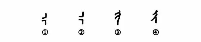 這是個(gè)“彳(chì斥)”字,是個(gè)象形字。甲骨文①是“行”字的左半邊(“行”字的甲骨文形體是個(gè)十字路口)。金文②的形體與甲骨文基本相同??墒切∽劬妥兊貌惶窳???瑫?shū)④那就根本沒(méi)有路口的形象了。