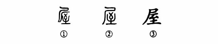 “八月秋高風(fēng)怒號,卷我屋上三重茅。”這里的“屋”字本為會(huì )意字。①是《說(shuō)文》中籀文的形體,上部為“尸”和“廠(chǎng)”形。《說(shuō)文》:“尸,象屋形。”“廠(chǎng)”是山崖形。下部為“至”,表示在屋內“止息”之義。②是小篆的形體,“至”上為“尸”,去掉“廠(chǎng)”形。③是楷書(shū)寫(xiě)法。