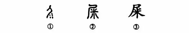 “屎”字是個(gè)會(huì )意字。甲骨文①實(shí)在形象,面向左側立的一個(gè)“人”,在臀部之后有五個(gè)小點(diǎn)兒,這就是人拉的屎。小篆②的上部“尸”也是人形,下部寫(xiě)作“米”,這說(shuō)明人的“屎”是由“米”經(jīng)消化以后變成的。③是楷書(shū)的寫(xiě)法,是由小篆直接演變而來(lái)。