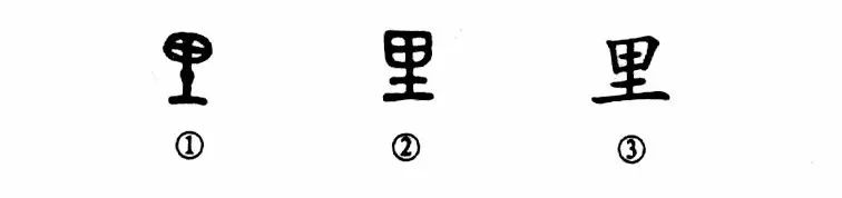 這是“風(fēng)塵十載歸故里”的“里”字。這個(gè)字是個(gè)會(huì )意字。金文①的上部是“田”,下部是“土”。人民是“恃田而食,恃土而居”,所以有“田”有“土”,才能生活。由于這些條件,就能形成居民聚居的地方,稱(chēng)之為“里”。②是小篆的形體,直接由金文變來(lái)的,筆形極為相似。③是楷書(shū)形體,與小篆基本相同。