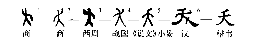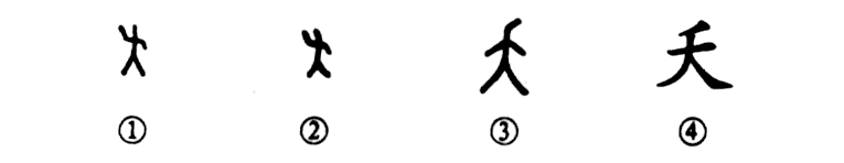 這個(gè)“夭”字是個(gè)象形字。甲骨文①像一個(gè)人彎曲兩臂。金文②的形體也基本上同于甲骨文。小篆③則把彎曲的兩臂之形改為向右歪頭。④是楷書(shū)的寫(xiě)法,把歪頭狀改為一撇,這是為了符合漢字的筆形要求和書(shū)寫(xiě)方便而改動(dòng)的。
