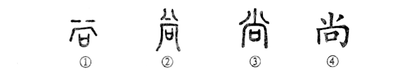 “賢人尚志?!边@個(gè)“尚”字本為象形字。甲骨文①下部像一建筑物,壁有窗戶(hù),上有兩橫,為煙氣上騰狀。②是金文的形體,其下部是個(gè)“向(窗戶(hù))”字,上部未變。③是小篆的形體。④為楷書(shū)的寫(xiě)法。