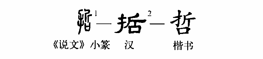 形聲字。《說(shuō)文》:“哲,知也。從口,折聲。悊,哲或從心。”從口之哲不見(jiàn)于西周金文及戰國文字,只有從心之悊。古人沒(méi)有大腦的概念,以心為思維器官,并作為思想、意念、感情的通稱(chēng),心亦是人的主觀(guān)意識的代名詞。悊本義為明智、智慧,從心表義,從口于理無(wú)據。因此,哲之從口乃從心之訛誤??硕Α疤熳用鲪啞?,用其本義。由明哲引申指賢明的人或有智慧的人,如哲人。(陳英杰)