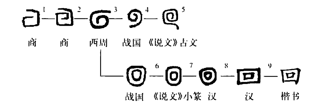 象形字。商周文字均像回環(huán)旋轉之形,戰國時(shí)秦文字變?yōu)閺膬韧鈨蓚€(gè)封閉的環(huán)形,為后世文字所本。本義指旋轉。《說(shuō)文》:“回,轉也。”《荀子?致士》:“水深而回。”《古詩(shī)十九首》之十二:“回風(fēng)動(dòng)地起,秋草萋以綠。”引申指掉轉。《楚辭?離騷》:“回朕車(chē)以復路兮,及行迷之未遠。”又指轉變。漢賈誼《陳政事疏》:“夫移風(fēng)易俗,使天下回心而鄉[向]道,類(lèi)非俗吏之所能為也。”又指還,返。唐賀知章《回鄉偶書(shū)》:“少小離家老大回,鄉音無(wú)改鬢毛衰。”又指答復。宋沈括《夢(mèng)溪筆談?人事二》:“有一縣令使人獨不肯去,須責回書(shū)。”又引申指迂回。《漢書(shū)?李廣傳》:“東道少回遠。”顏師古注:“回,繞也,曲也。”又指邪僻。《左傳?襄公二十三年》:“奸回不軌,禍倍下民可也。”又用為量詞,次。唐杜甫《百憂(yōu)集行》:“庭前八月梨棗熟,一日上樹(shù)能千回。”(翼小軍)