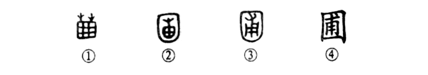 孔子在《論語(yǔ)》中說(shuō)過(guò):“吾不如老圃。”這是說(shuō),我不如種菜的老農?!边@個(gè)“圃”字,我們從甲骨文①的形體看,其下部是眾多的方框菜田,其上部長(cháng)出了兩棵菜苗。所以“圃”字的本義是種植蔬菜瓜果的園子。金文②則把甲骨文的形體簡(jiǎn)化了一下,并在周?chē)恿藗€(gè)方框表示圍墻。到了小篆③則把其中的苗圃形偽變?yōu)椤案Α?這就變成了內聲(甫)外形(囗)的形聲字“圃”了??瑫?shū)④則是直接由小篆的形體變來(lái)的,也是外形內聲的形聲字。