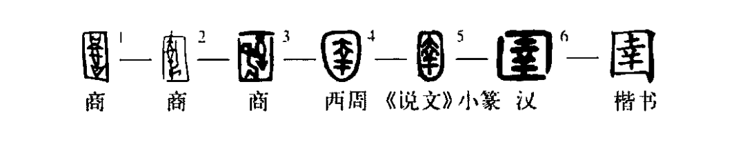 這是“陷于囹圉”的“圉”字,讀作yǔ,本為會(huì )意字。①是甲骨文的形體,內部是一個(gè)面朝右跪著(zhù)的人,雙手戴著(zhù)刑具,外部是囹圄(牢獄)之形,表示犯人被關(guān)進(jìn)監牢之中。②是金文的形體,內部的“人”形已省掉了,僅存一刑具。③是小篆的寫(xiě)法。④為楷書(shū)的形體。