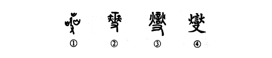 “論道經(jīng)邦,燮理陰陽(yáng)?!边@個(gè)“燮”字讀作xiè,本為會(huì )意字。①是甲骨文的形體,于省吾先生認為中間“乃言字”上部為火形,右下為“又(手)”。②是金文的形體,中間的“言”發(fā)生訛變,但“火”形仍在。③是小篆的形體,中間為“言”。④是楷書(shū)的寫(xiě)法。