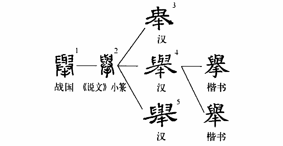 《說(shuō)文》:“舉,對舉也。從手,與聲。”釋義是對的。但說(shuō)“從手,與聲”是僅就“舉”字的小篆體分析的,不夠全面。從上面所列的形體看,“舉”字的本義就是“舉起”或“抬起”,如《新五代史•楊行密傳》:“為人長(cháng)大有力,能手舉百斤。”由“舉起”義又可以引申為“攻下”或“占領(lǐng)”,如《谷梁傳•僖公二年》:“五年而后舉虞。”就是說(shuō):五年以后占領(lǐng)了虞國。“舉”字還能從實(shí)詞轉化為虛詞,即范圍副詞“全”義,如“舉世無(wú)雙”等。