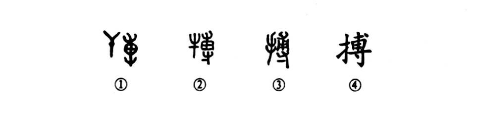 “搏手困窮,無(wú)望來(lái)秋。”這個(gè)“搏”字本為形聲字。①是金文的形體,左邊是“干(盾之類(lèi)的武器)”,表示用武器搏斗,右邊的“尃”表示讀音。②是石鼓文的形體,左邊的“干”訛變?yōu)?ldquo;牛”。③是小篆的形體,由“牛”變?yōu)?ldquo;手”,有道理。④為楷書(shū)的寫(xiě)法。