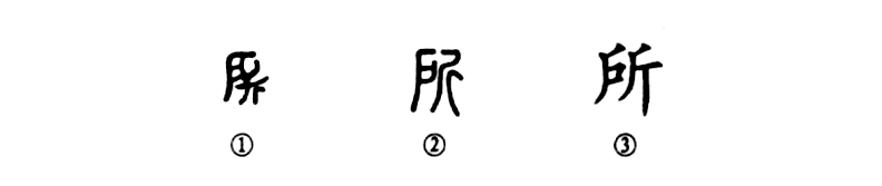 “所”字是個(gè)會(huì )意字。金文①的左邊是一扇門(mén)(戶(hù)),右邊是一把大斧頭,以斧破門(mén),表示盟誓之義。小篆②的形體基本上同于金文。③是楷書(shū)的形體。“所”字當“破門(mén)”講的本義到了后世已經(jīng)消亡,而大都被假借為“處所”的“所”字用了,如《左傳•僖公二十八年》:“公朝于王所。”就是說(shuō):公在王的住所朝見(jiàn)了王?,F在又引申為特指機關(guān)或特種用途的處所,如醫務(wù)所、派出所、招待所等等。
