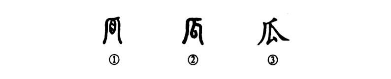 “瓜熟蒂落”,“瓜”字是個(gè)象形字。你看金文①中間的大瓜還結在蔓上,其向右下方伸展的一筆是瓜須的形象。小篆②的“瓜”變小了,但仍有瓜形。③是楷書(shū)的寫(xiě)法,這么一變就不像瓜的樣子了,但仍然可以看出楷書(shū)與金、篆文字一脈相承。