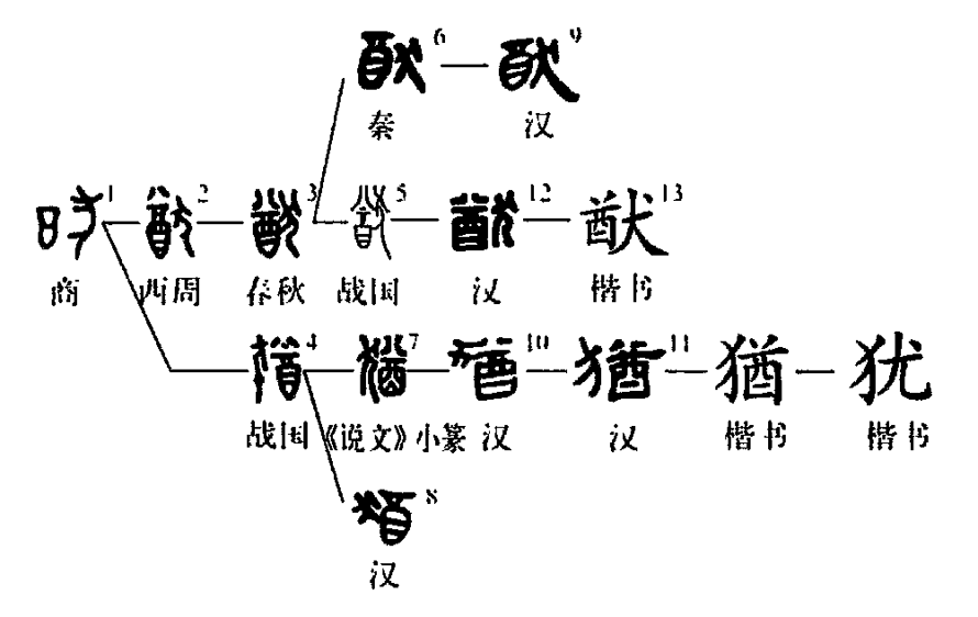 《說(shuō)文》:“猶,玃屬。從犬酋聲。”“猶”的本義早已消失,許慎的說(shuō)法是假借義,后世也多用它的假借義,即指一種猴類(lèi)的動(dòng)物,如酈道元《水經(jīng)注•江水》:“山多猶猢,似猴而短足,好游巖樹(shù)。”《爾雅•釋獸》又說(shuō):“猶如麂(jǐ),善登木。”既然善于爬樹(shù),就很可能是猿猴的一種。
