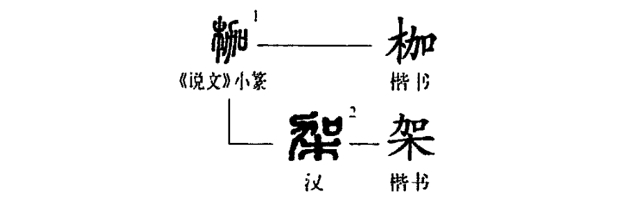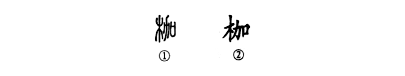 “因嫌紗帽小,致使鎖枷扛。”這個(gè)“枷”字是形聲字。①是小篆的形體,左為“木”,右為“加”,是一個(gè)“從木,加聲”的形聲字。②為楷書(shū)的形體。
