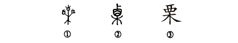 ”,其下是“木”。楷書(shū)③的上部又變成了“覀”,根本看不出栗子的形狀了。
