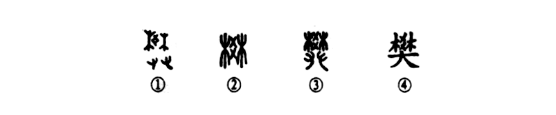 “久在樊籠里,復得返自然。”這個(gè)“樊”字本為會(huì )意兼形聲的字。①是金文的形體,上部為籬笆之形,下部是一雙手,表示雙手編織籬笆。該字的上部既表意也表音。②是小篆的形體,省掉了兩只手,頗像園圃周?chē)幕h笆的樣子。③也是小篆的形體,由金文演變而來(lái)。④是楷書(shū)的寫(xiě)法。