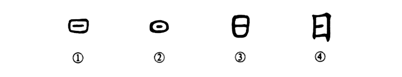 這就是“旭日東升”的“日”字。甲骨文①和金文②都像太陽(yáng)的形狀。所以“日”是個(gè)象形字。③是小篆的形體,原來(lái)中間的一點(diǎn)則變成了一橫??瑫?shū)④是依小篆的形體寫(xiě)為方形。