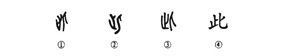這個(gè)此字是個(gè)會(huì )意字。甲骨文①的左邊是一只腳趾朝上的腳(止),右邊站著(zhù)一個(gè)面朝右的人,這就表明人站的地方稱(chēng)為“此”。金文②的形體與甲骨文相同,只是把甲骨文的空心腳變成粗壯的腳。③是小篆的形體,變得腳也不像腳,人也不像人了。④是楷書(shū)的寫(xiě)法。