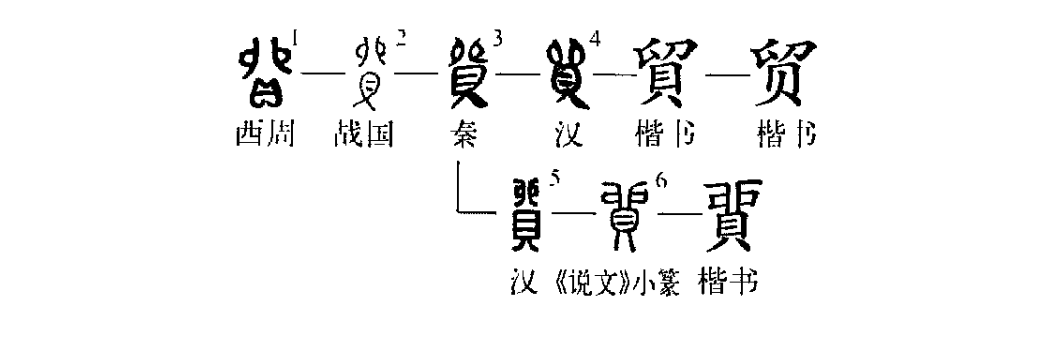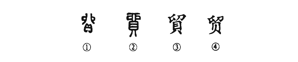 “貿遷有無(wú),各得其所。”這個(gè)“貿”字本為形聲字。①是金文的形體。其上為“卯”,表聲,其下為“貝”,表形。②是小篆的寫(xiě)法。③為楷書(shū)繁體字。④為簡(jiǎn)化字。