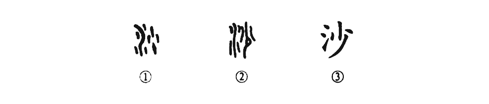 “風(fēng)急天高猿嘯哀,渚清沙白鳥(niǎo)飛回。”這個(gè)“沙”是個(gè)會(huì )意字。從金文①看,左邊是彎曲之水形,右邊的四點(diǎn)是表示有很多沙粒。所以水邊或水底的細小石子稱(chēng)為“沙”。②是小篆的形體,左邊的“水”字沒(méi)有變,右邊的沙子變?yōu)?ldquo;少”字了。③是楷書(shū)的形體,由小篆直接變來(lái),同樣都是會(huì )意字。
