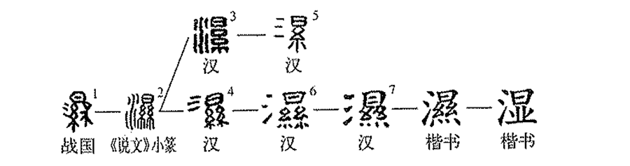 省聲。”按:《說(shuō)文》乃據小篆為訓,不足據。又,省聲之說(shuō)亦不可信。清段玉裁《說(shuō)文解字注》:“今字作濕。”按:“濕”之形或當由許慎“