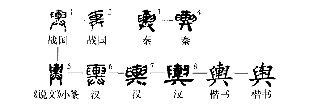 形聲字。《說(shuō)文》:“輿,車(chē)輿也。從車(chē),舁聲。”段玉裁注:“車(chē)輿謂車(chē)之輿也。”徐鍇:“輿,車(chē)底也。”唐顏師古注《急就篇》:“著(zhù)輪曰車(chē),無(wú)輪曰輿。”徐灝段注箋:“輿之言舁也,所載以行陸者。字又作轝?!兑?middot;說(shuō)卦傳》:‘坤為大轝為眾’,因之有輿地之稱(chēng),而輿又訓為眾?!蹲髠?strong style="margin: 0px; padding: 0px; color: rgb(123, 12, 0); font-family: 宋體; font-size: 18px; text-indent: 34px; white-space: normal;">·僖公二十八年》:聽(tīng)輿人之謀。桂注:輿,眾也。蓋坤厚載物,輿之象也,所載物多,眾之義也。”(周寶宏)